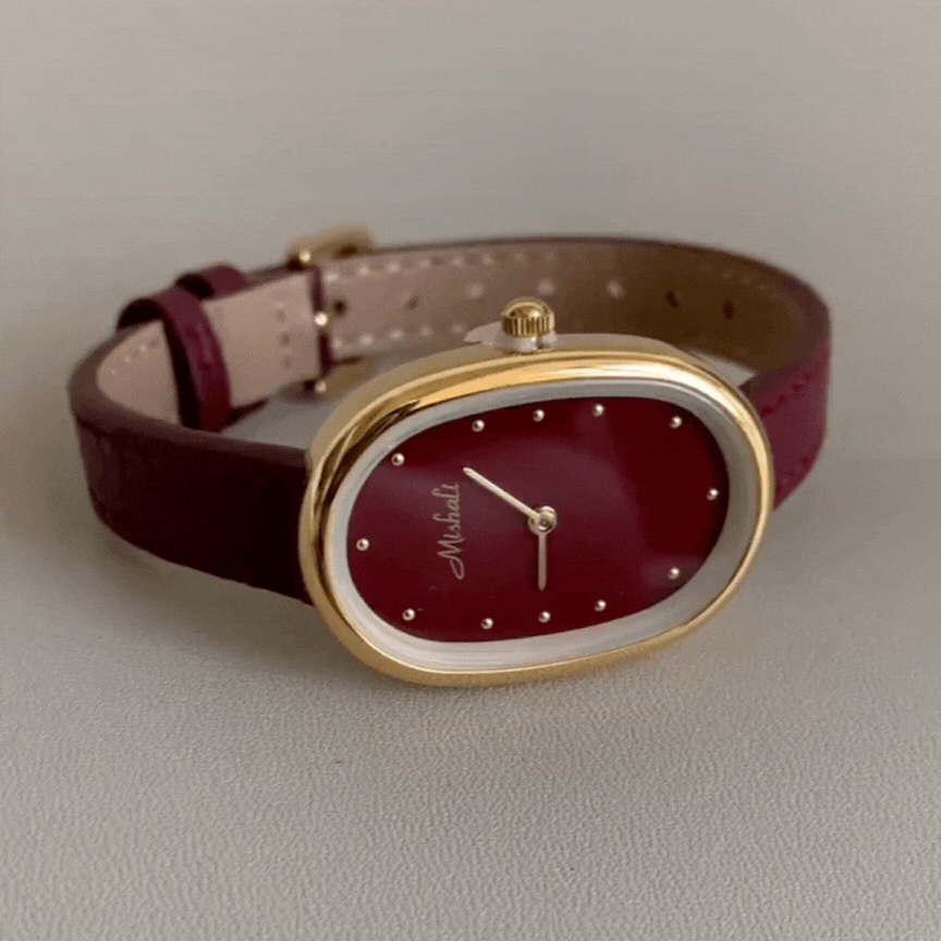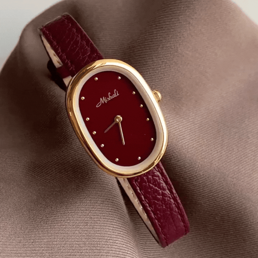 Découvrez la montre Angora Rouge, un chef-d'œuvre d'élégance moderne. Un bracelet en cuir rouge souple s'associe à un élégant boîtier doré, encadrant un cadran rouge éclatant aux chiffres romains raffinés. Audacieuse, intemporelle et raffinée.