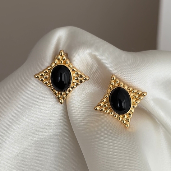Discover a unique fusion of organic texture and modern geometry with these Artisan Weave Oval Earrings. Designed for the individual who seeks to express a distinct yet versatile style, these ear studs transform the classic oval silhouette with an intricate woven diamond-pattern texture, anchored by the deep, polished allure of a black onyx center. They are a testament to crafted detail and wearable art.