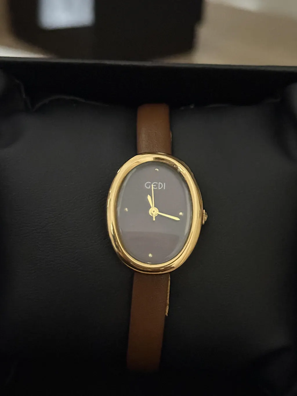 Minimalist Brown Leather Watch for Women – Vintage Oval Gold Case