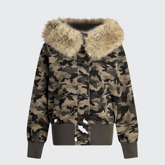 - Product Name: Camouflage Faux Fur Collar Bomber Jacket