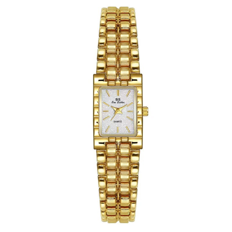 Classic Vintage Square White Dial Gold-Tone Alloy Bracelet Quartz Watch