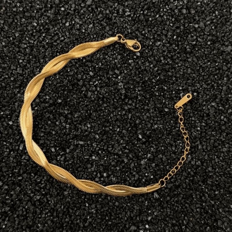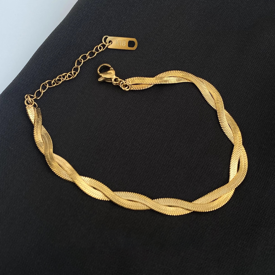Embodies Euro-American elegance with its double-twist design in durable titanium steel and K-gold plating. The interwoven strands create dynamic light reflection, secured by a comfortable clasp for all-day wear. Hypoallergenic and tarnish-resistant, it maintains brilliance through daily use. This versatile piece transitions effortlessly from casual to formal occasions, offering timeless sophistication for fashion-conscious individuals seeking refined accessories.