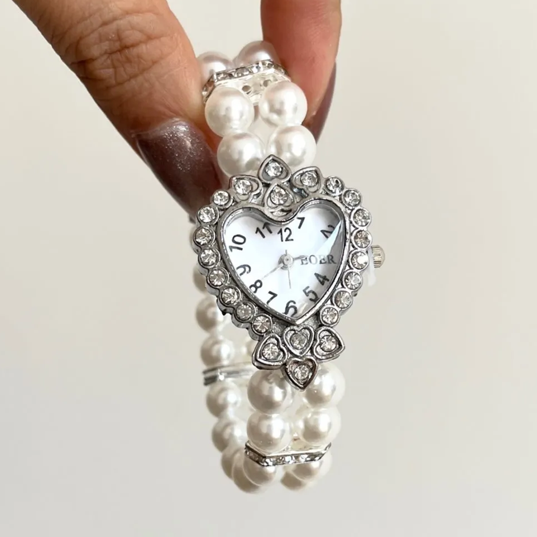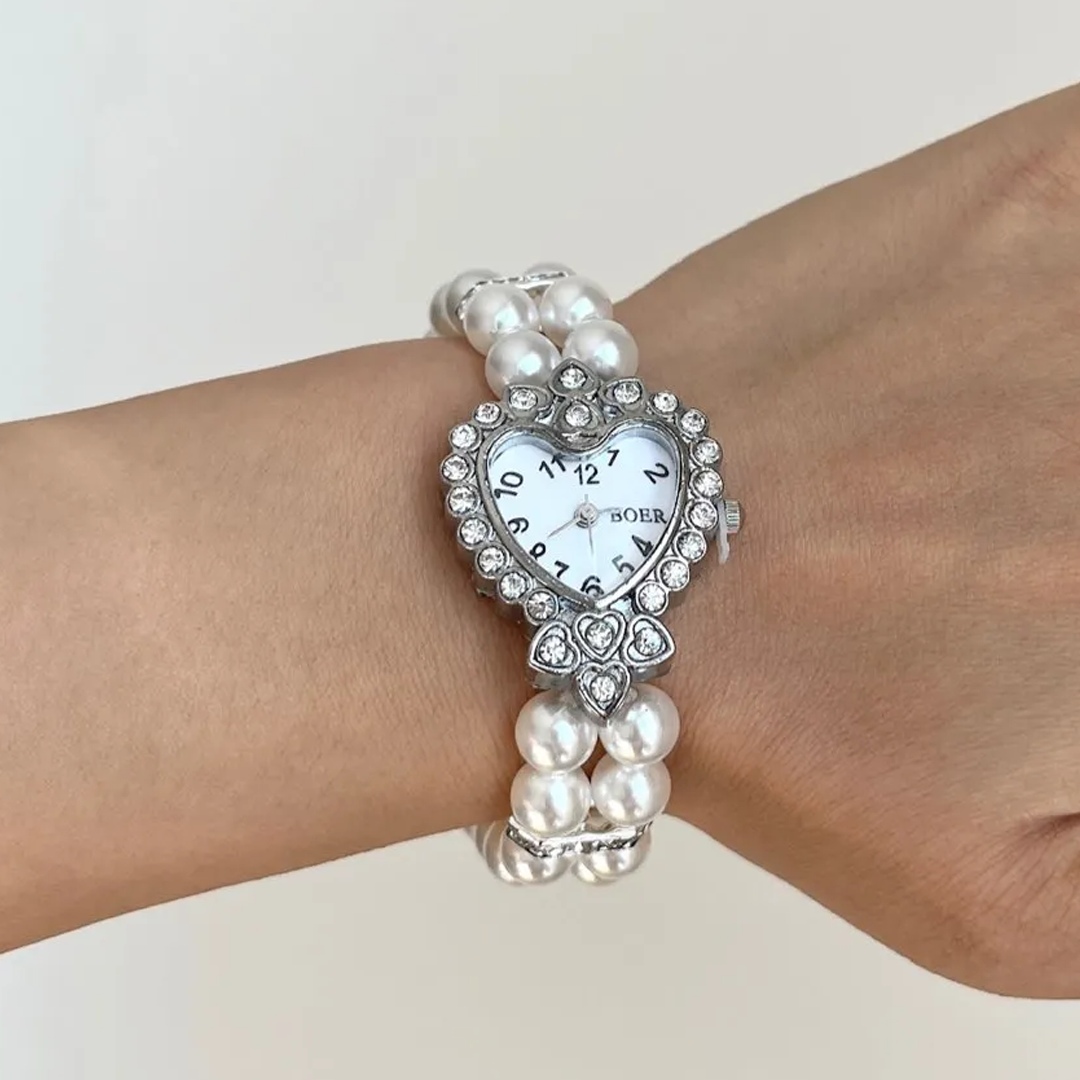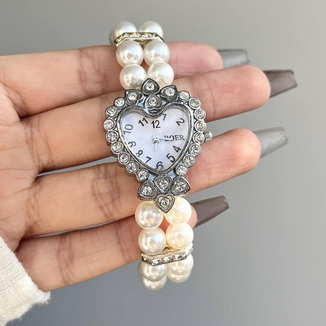 Montre élégante en perles : montre à quartz classique en forme de cœur