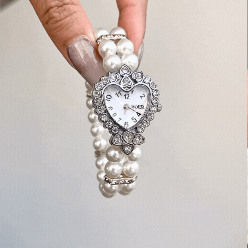 Découvrez l'Elegant Pearl Watch, une fusion captivante de charme intemporel et de sophistication raffinée. Un cadran nacré brillant est enchâssé dans un boîtier délicat en forme de cœur, exprimant un romantisme doux et une élégance naturelle.