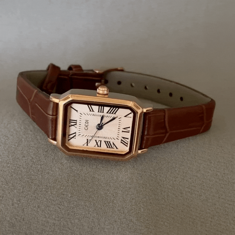 Montre vintage en cuir Bamboo-Ridge Roman : montre marron classique