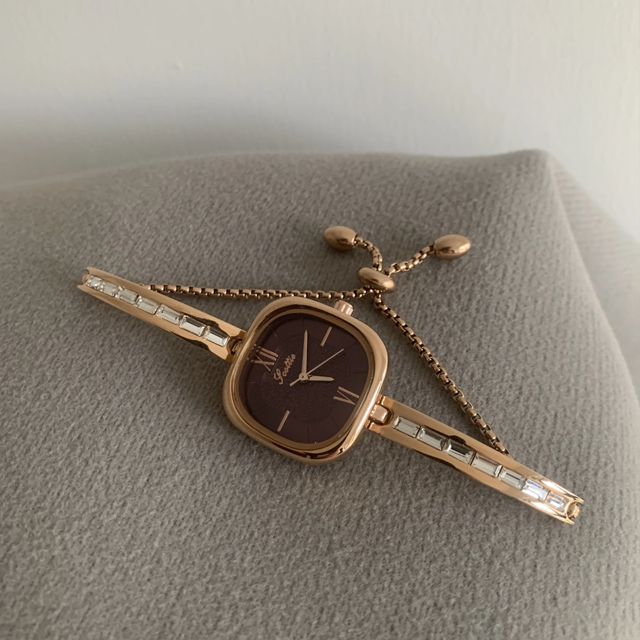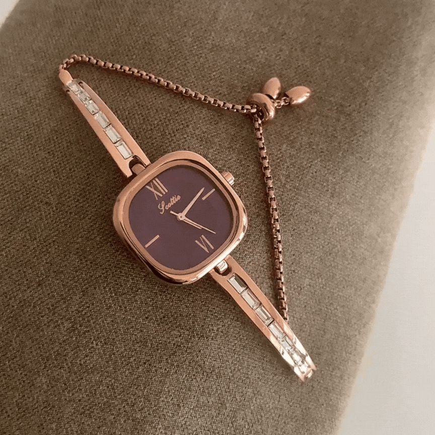Découvrez la montre Lavender Royale , une fusion exquise entre luxe moderne et design raffiné. Cette montre arbore un cadran carré unique d'un violet profond et profond, complété par un bracelet chaîne en or rose qui respire la sophistication et l'intemporalité. Son design compact et distinctif rehausse son charme, en faisant un accessoire idéal pour les amateurs d'élégance subtile et de savoir-faire haut de gamme. Avec ses lignes épurées et ses détails raffinés, la montre Lavender Royale est un choix exceptionnel pour tous ceux qui souhaitent ajouter une touche de personnalité et de grâce à leur garde-robe.