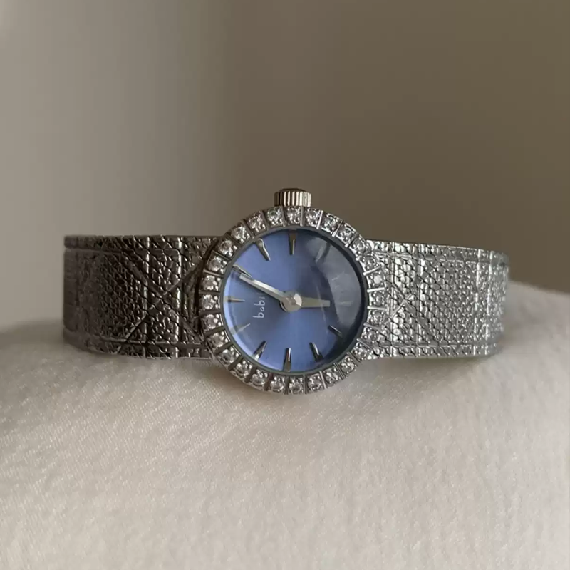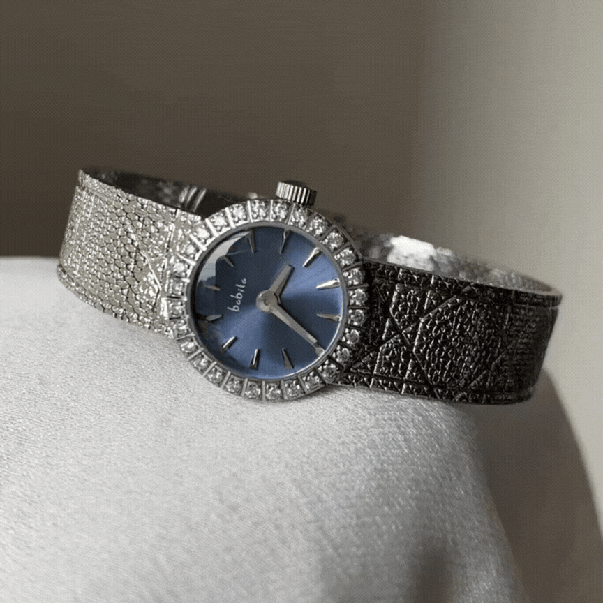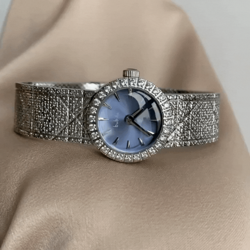Montre à quartz pour femme avec bracelet en argent glacé et cadran en nacre bleue