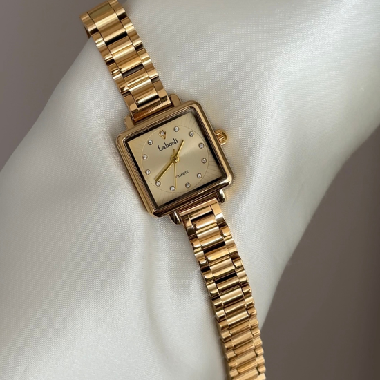 Modern Classic Watch: Full Gold Tone Square Dial & Stainless Steel Bracelet