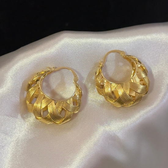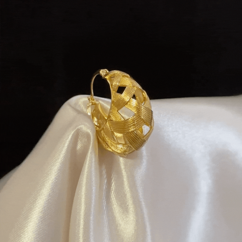 Modern Luxury C-Shaped Textured Weave 925 Surgical Steel Earrings for Women