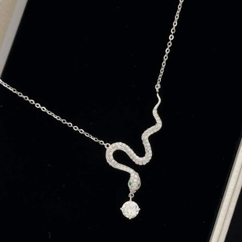 Modern Minimalist Silver Serpent Necklace – Dainty Collarbone Pendant for Women