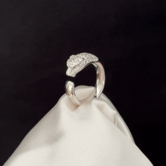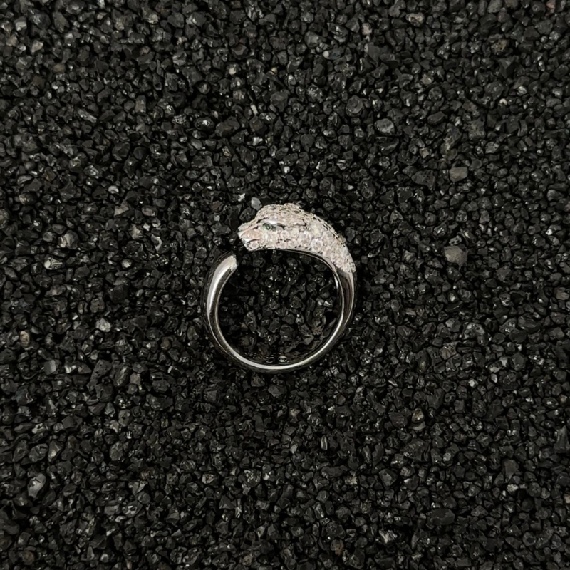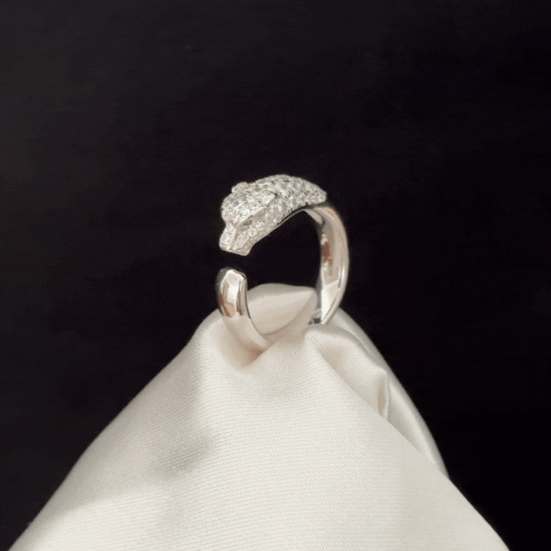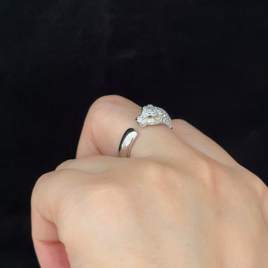 Panther Head Ring White Gold Plated with Micro-set Zirconia - Bold Luxury Open Ring