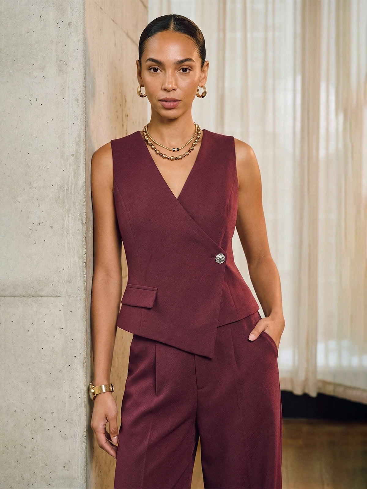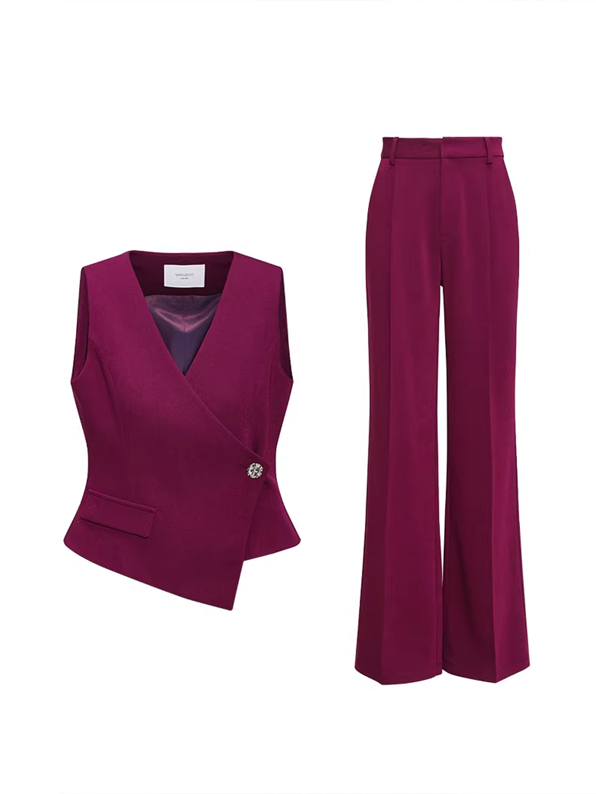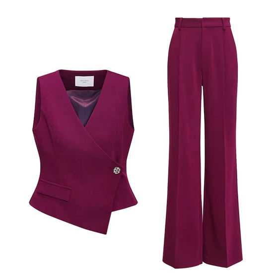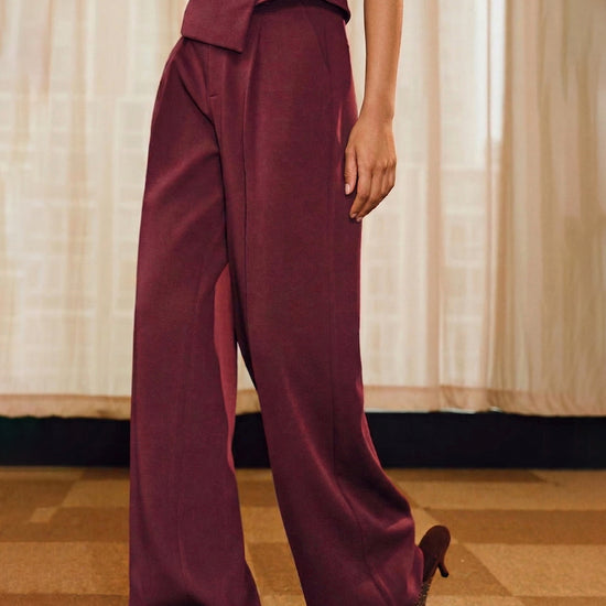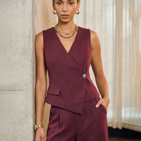 Professional Workwear Asymmetric Vest & Wide-Leg Trousers Set Red