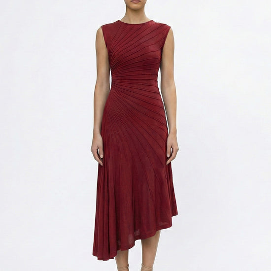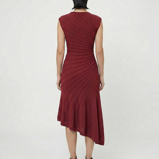 Radial Pleated Sleeveless Asymmetrical Sunburst Midi Dress