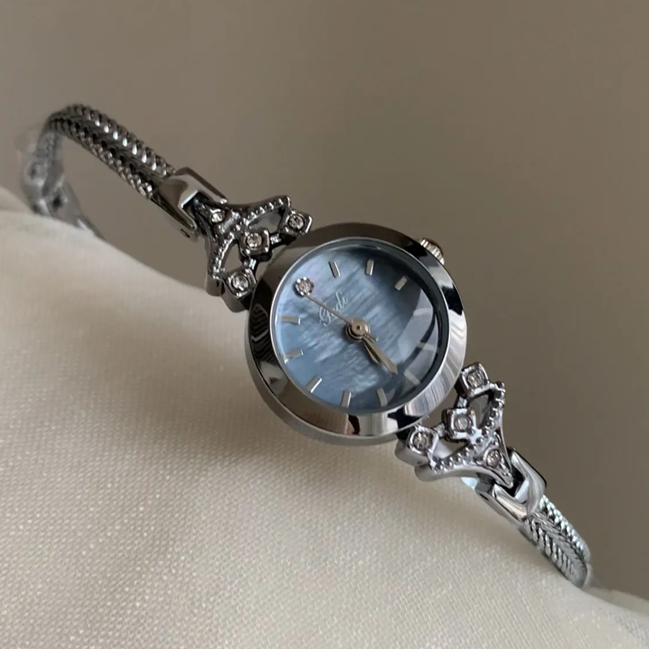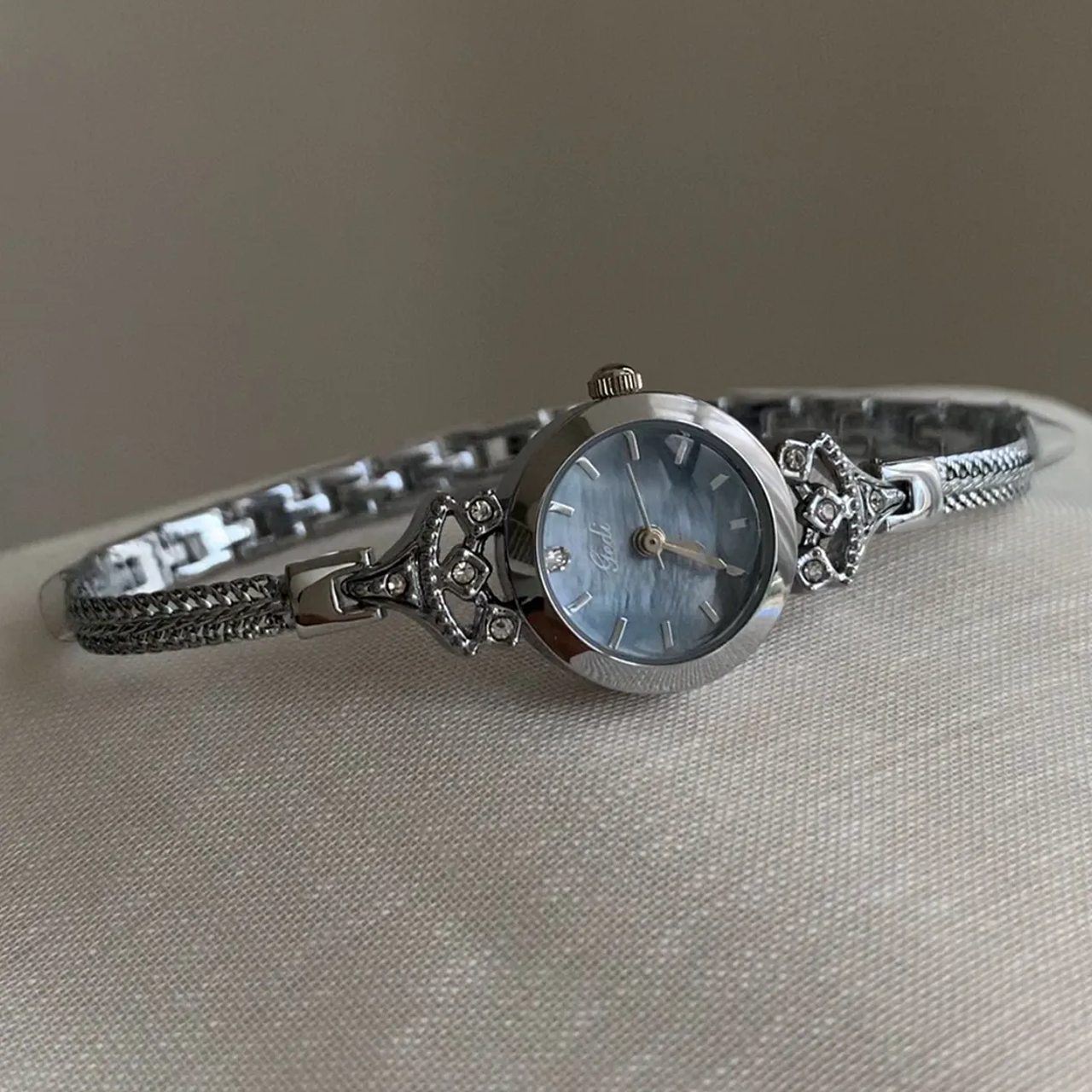 Charme royal raffiné : mini montre ronde à quartz en nacre bleue