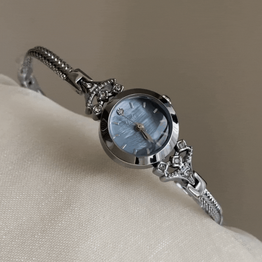 Incarnant une touche d'élégance royale, cette mini-montre ronde arbore un cadran envoûtant en nacre bleue. Son design délicat et la précision du quartz en font un accessoire raffiné pour toutes les occasions.