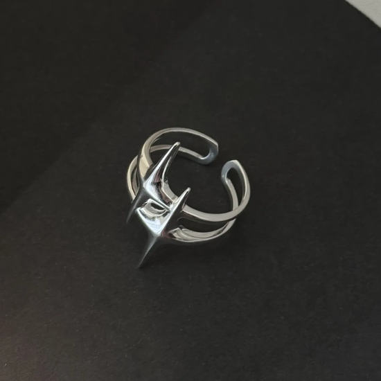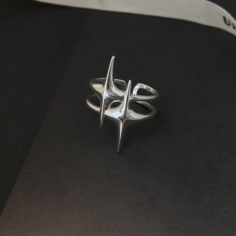 Inspired by the symbolism of protection and guidance, this four-point star ring is crafted from S925 sterling silver. The open adjustable design ensures a comfortable fit, making it a meaningful and elegant piece for everyday wear.