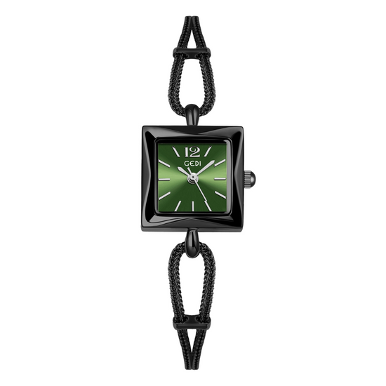 Cette montre à quartz pour femme unique arbore un élégant bracelet noir et un cadran carré vert pour une esthétique moderne et audacieuse. Son design unique allie élégance et charme vintage, ce qui en fait un accessoire remarquable en toute occasion. Parfaite pour celles qui apprécient un style raffiné et original.