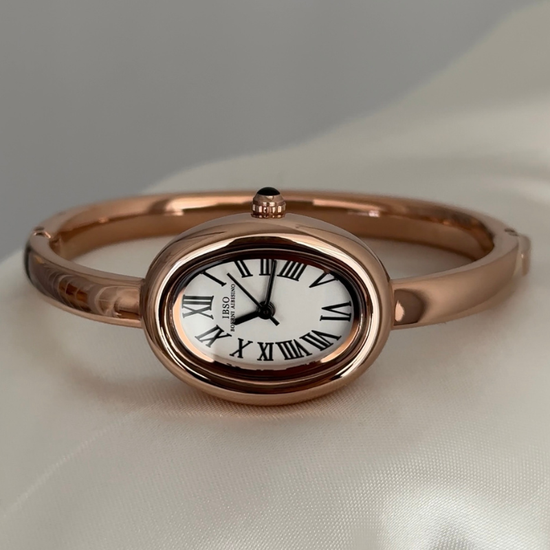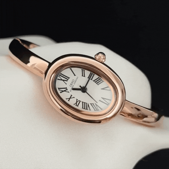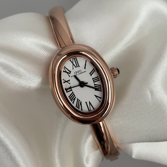 Combining vintage charm with timeless elegance, this watch presents a white oval dial set in a curved rose gold bathtub-style case. The matching rose gold alloy bracelet ensures comfort with its flexible, secure clasp. Precise quartz movement guarantees accurate timekeeping. The white and rose gold palette transitions seamlessly from professional daytime settings to evening events. Blending nostalgic design with modern comfort, it offers enduring style for those who appreciate refined craftsmanship in everyday accessories.