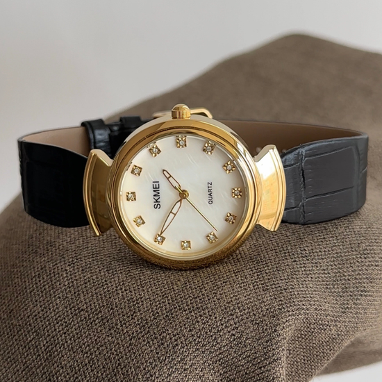 The Aura Classic quartz watch combines timeless design with modern precision. Featuring an elegant round gold dial in a gold-tone alloy case paired with a black leather strap, this versatile timepiece transitions seamlessly from casual to formal occasions.Powered by reliable Japanese quartz movement, it ensures accurate timekeeping. Protected by scratch-resistant mineral crystal, the watch maintains its beauty through daily wear. The balanced 33mm case offers a comfortable, sophisticated presence on the wrist.