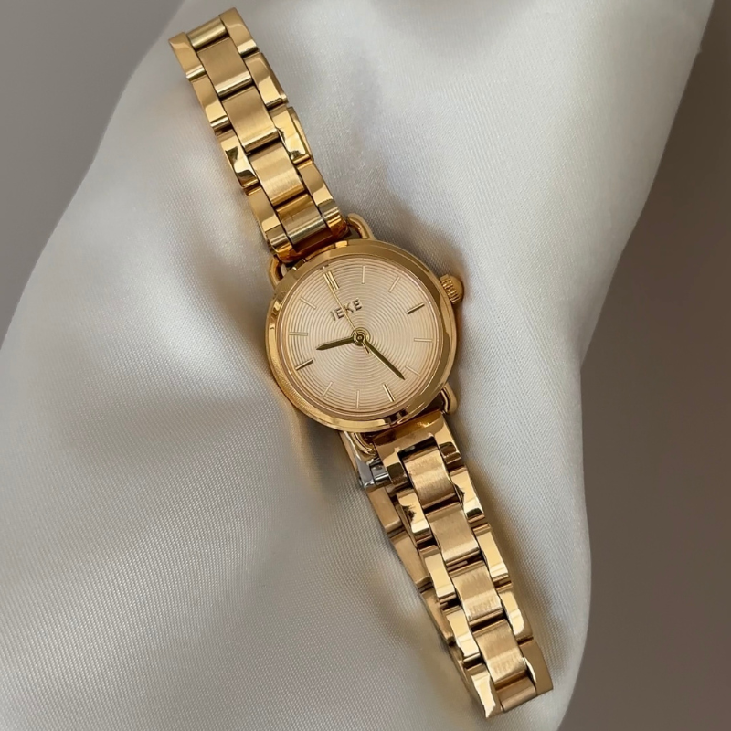 Exuding timeless refinement, this classic luxury watch presents a radiant gold round dial with sunburst finish, set in a polished gold-tone case and paired with a matching alloy bracelet for a seamless monochromatic aesthetic.