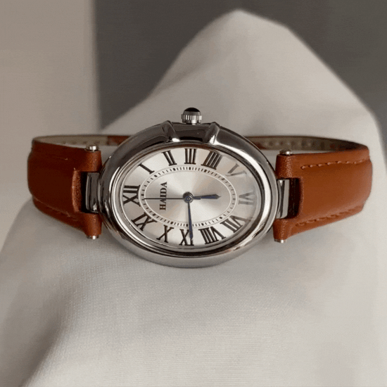Decentan i profinjen, ovaj ženski kvarcni sat ima blago zakrivljeni ovalno kućište srebrne boje uparen s toplim smeđi kožni remenNjegov minimalistički brojčanik i silueta inspirirana vintage stilom čine ga bez napora svestranim komadom - dovoljno elegantnim za ured, dovoljno opuštenim za vikend.