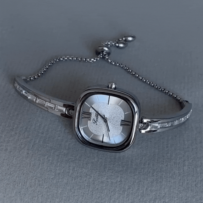 Ovaj izvrstan sat kvadratnog oblika oličenje je modernog luksuza i minimalističkog dizajna. S elegantnim srebrnim lancem koji je istovremeno podesiv i udoban, sat je ukrašen suptilnim dijamantnim detaljima, dodajući dašak elegancije. Savršen za one koji cijene finu izradu, njegov nježan, ali izdržljiv dizajn čini ga idealnim i za ležerne i za formalne prigode. Rafinirana srebrna završna obrada i podesivi lanac osiguravaju savršeno pristajanje, što ga čini bezvremenskim dodatkom za svaku kolekciju.