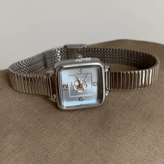 Ovaj elegantni kvarcni sat ima ledenjačko plavi kvadratni brojčanik ukrašen nježnim motiv kamelije, uparen s srebrna narukvica u stilu bambusa za profinjen, ženstven dodir. S precizni kvarcni mehanizam i gracioznim dizajnom, savršena je mješavina svježine i profinjenosti.
