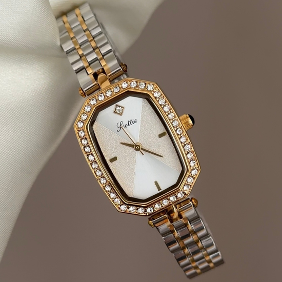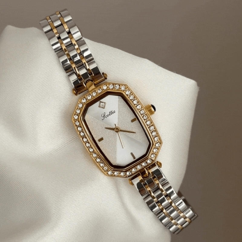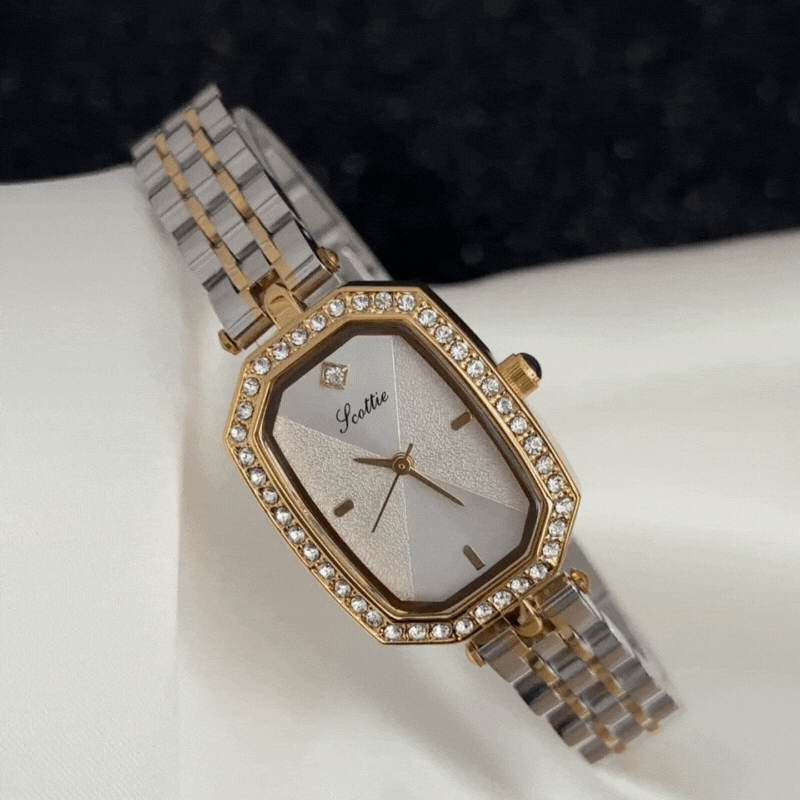 Luxury Silver Diamond Watch - Gold Frame Stainless Steel Quartz