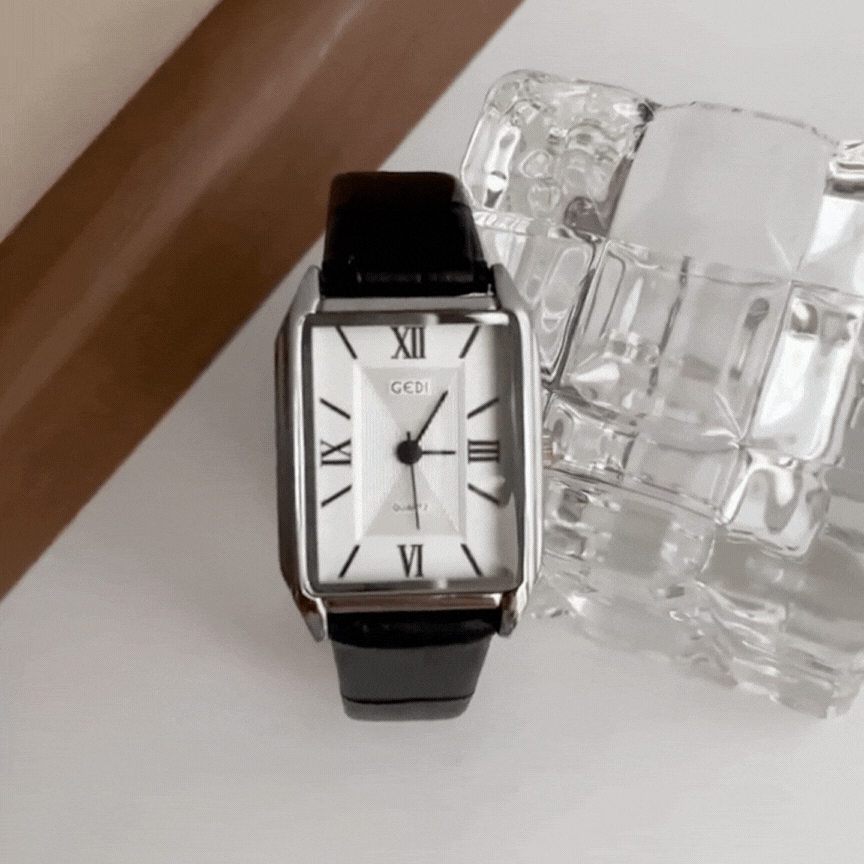 Ovaj elegantni kvarcni sat ima elegantno srebrno pravokutno kućište, a bijeli brojčanik s klasičnim rimskim brojevimai profinjeni crni kožni remenS precizni kvarcni mehanizam i bezvremenskim dizajnom, savršen je dodatak za bezbrižnu profinjenost i svakodnevnu eleganciju.