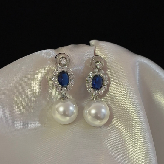 Versatile Silver Round Blue Zircon Pearl Drop Earrings for Women