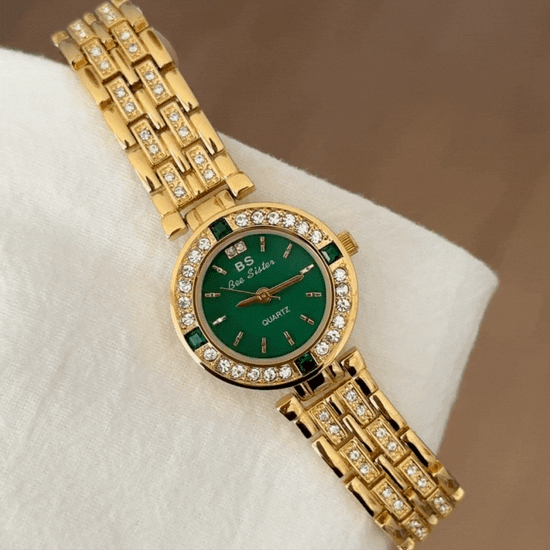 Discover the perfect synthesis of vintage inspiration and luxurious artistry with our Classic Retro Round Watch. This exquisite timepiece showcases a captivating green mother of pearl dial, whose mesmerizing iridescence shifts with the light, elegantly framed by a bezel set with shimmering white gemstones and paired with a polished gold-tone alloy bracelet. Designed for those with an eye for distinction, it masterfully balances timeless grace with radiant sophistication, creating a versatile accessory that transitions effortlessly from daytime refinement to evening brilliance.