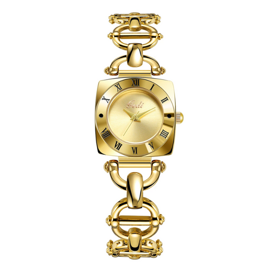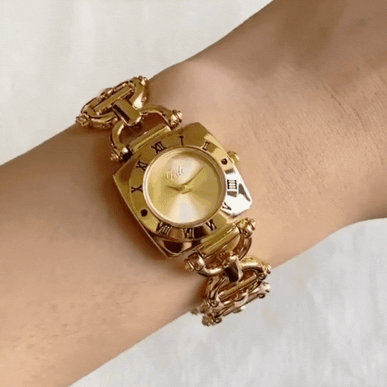 Ez a női kvarcóra párosítja a kerek római számokkal egy geometrikus négyzet alakú aranyszínű tok, mindezt egy kifinomult arany láncszem karkötőA vegyes formájú dizájn időtlen kifinomultságot idéz egy építészeti éllel – tökéletes azok számára, akik szeretik az újragondolt hagyományt.