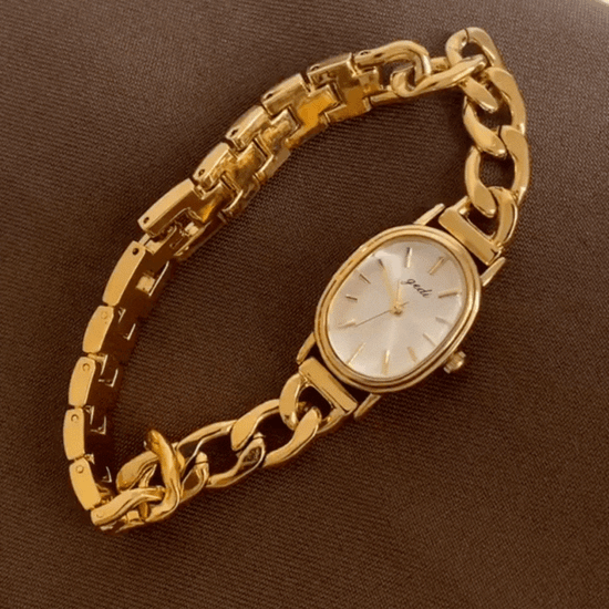 Arany vékony - női ovális kvarc óra lánc karkötővel