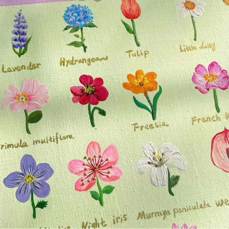 Blooming Flowers Wall Art – 25×40 cm Floral Print Painting, Modern Minimalist Home Decor Poster