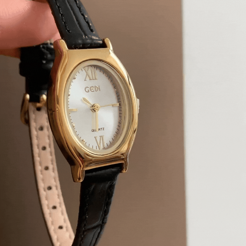 Vintage varázsa: Ovális fehér tárcsa és fekete bőr arany tok kvarc óra