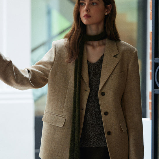 This piece defines modern sculptural luxury by merging a high-end minimalist aesthetic with the intellectual energy of academic chic. Crafted from 100% premium sheep wool, it offers a fluid, statuesque silhouette that transitions seamlessly from professional boardrooms to relaxed urban settings.