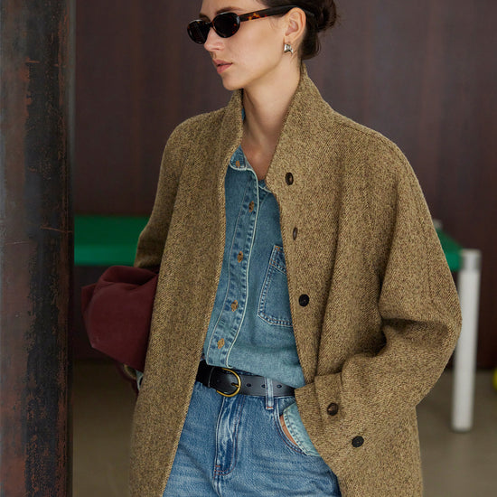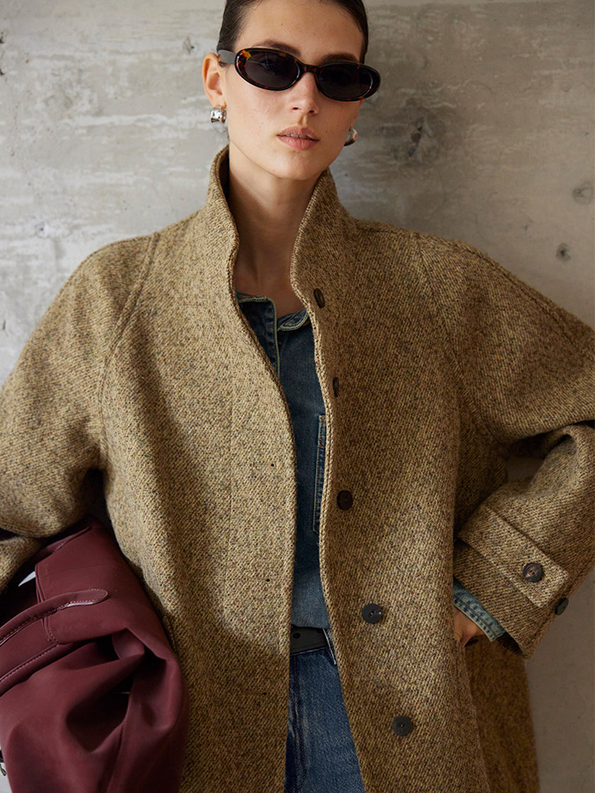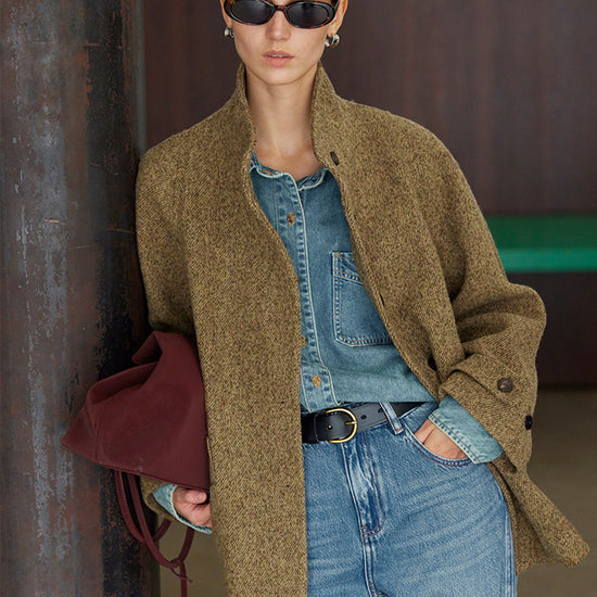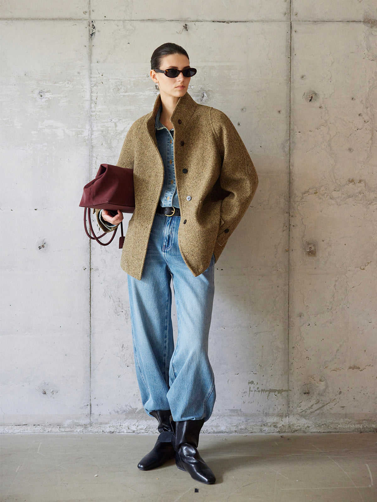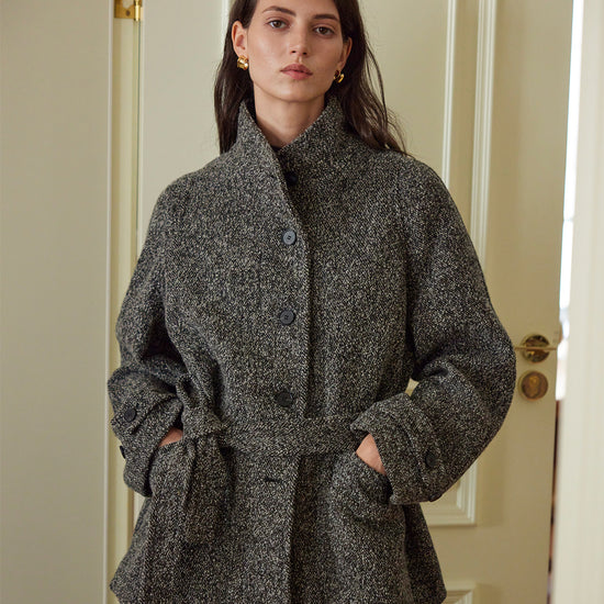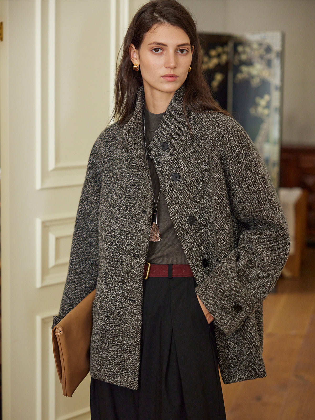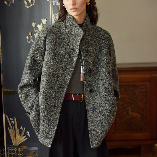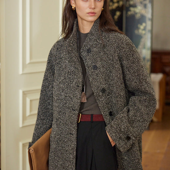 - Crafted from premium bouclé wool-blend fabric with a multi-dimensional energy that ensures superior warmth and a luxurious, editorial finish.