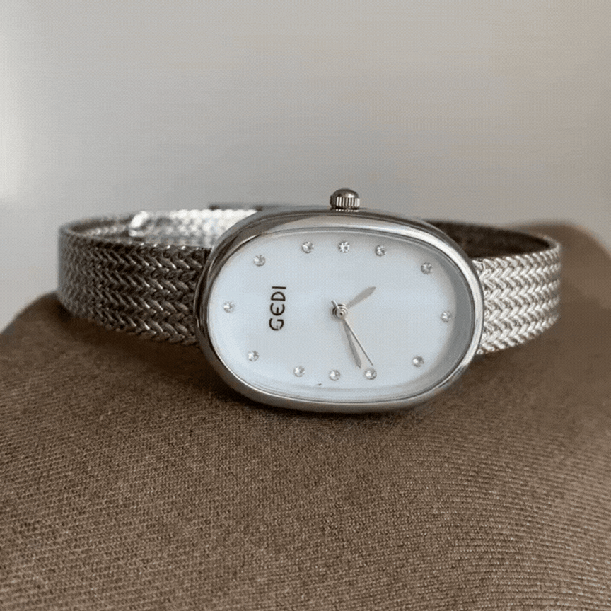 Questo elegante orologio presenta un bracciale argentato con motivo a spiga di grano e un quadrante bianco puro, che unisce uno stile senza tempo a una raffinatezza moderna. Perfetto per il lavoro o per le occasioni informali.