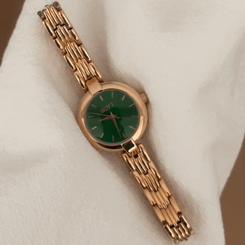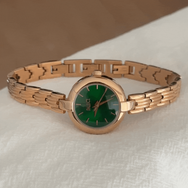Elegant Round Green Dial Watch with Gold Case & Alloy Strap | Quartz Movement