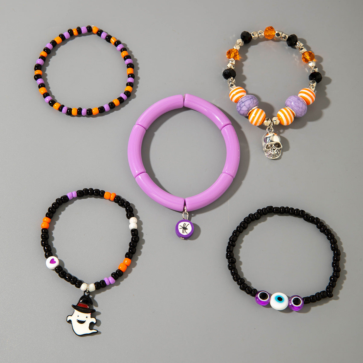 Halloween Jewelry 5-Pack: Skull Bracelets - Perfect for Party Favors
