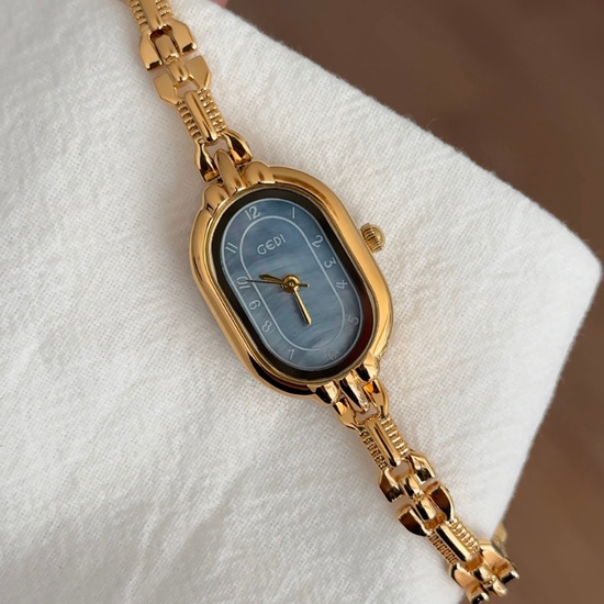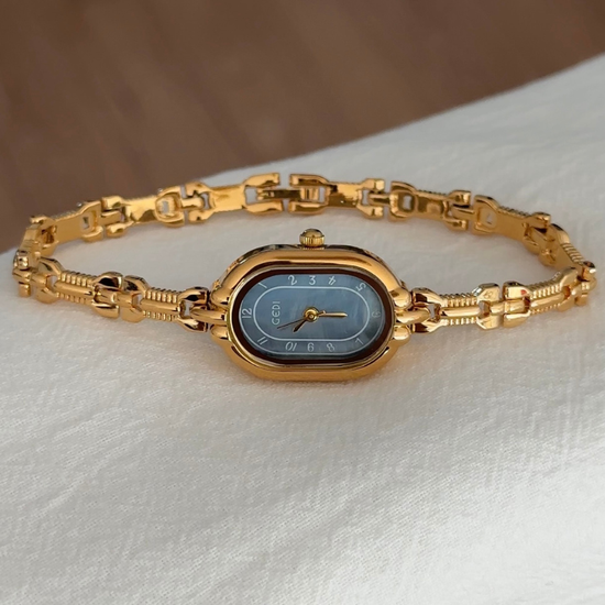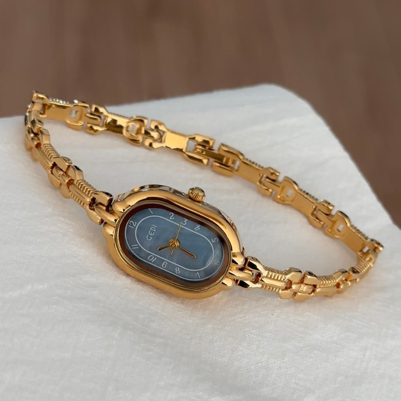 Minimalist Elegant Oval Blue Dial Gold-Tone Alloy Bracelet Quartz Watch