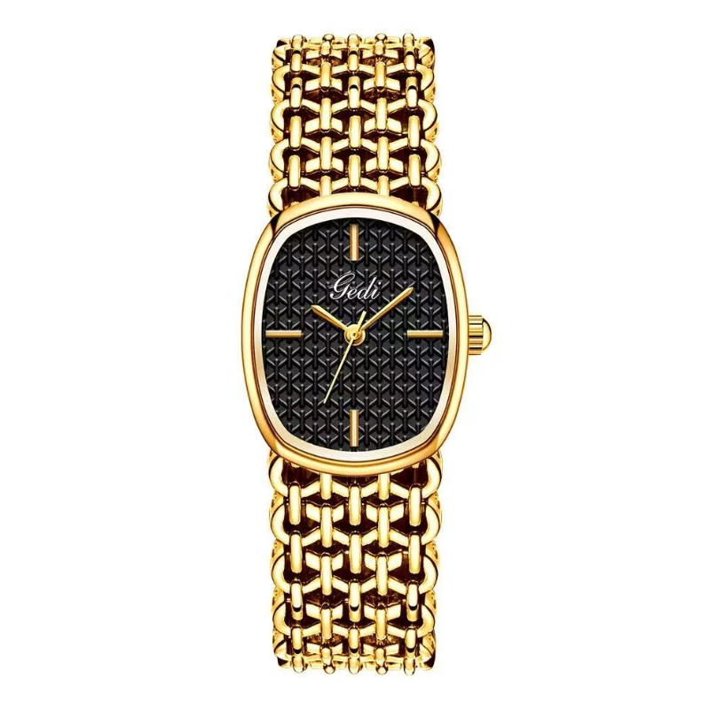 Modern Luxury Oval Watch - Black Dial Gold Case Premium Alloy Bracelet Quartz
