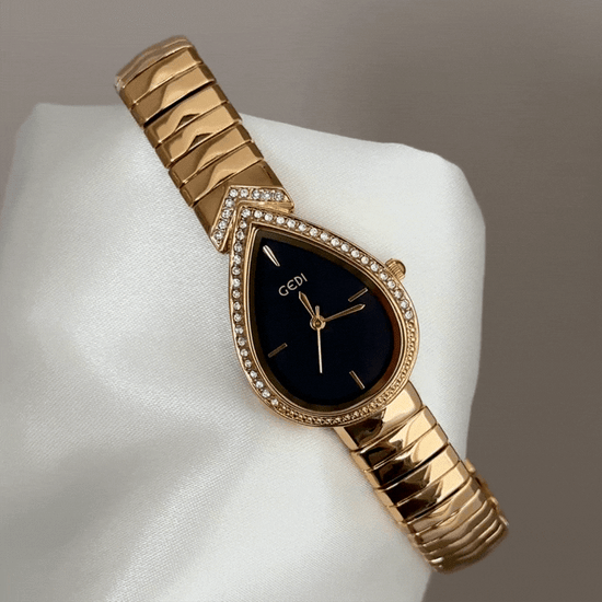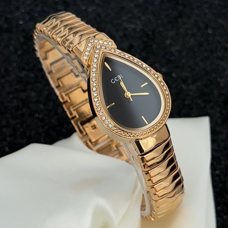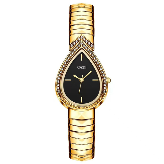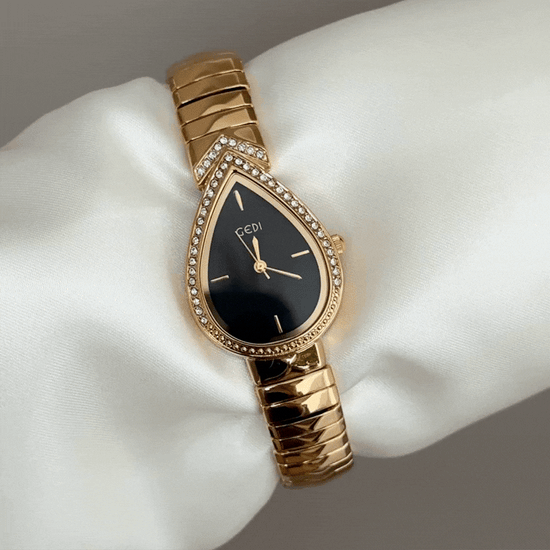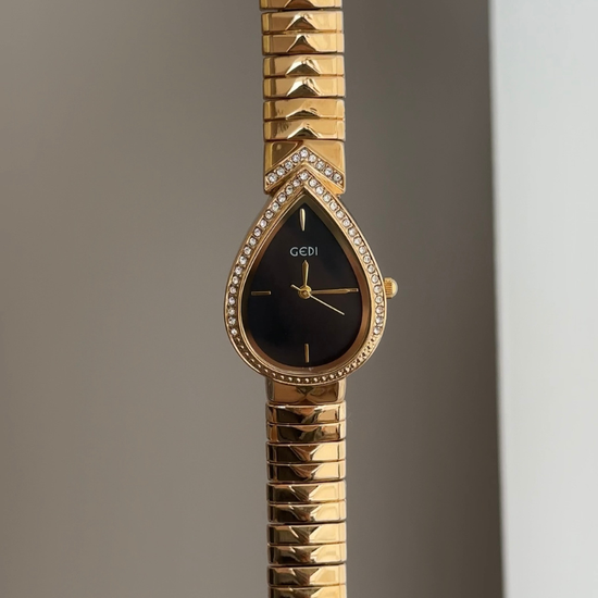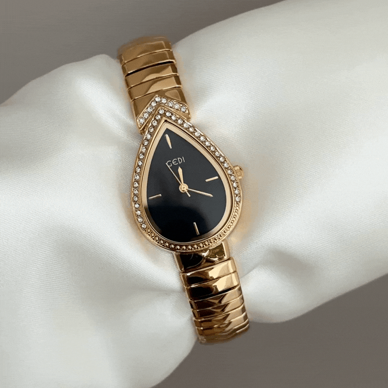 Mysterious Glamour: Black Teardrop Serpenti Dial with Gold Diamond Bezel & Strap