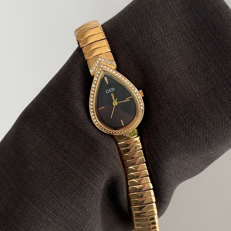 Curva aura - orologio per braccialetto con quadrante ovale scolpito