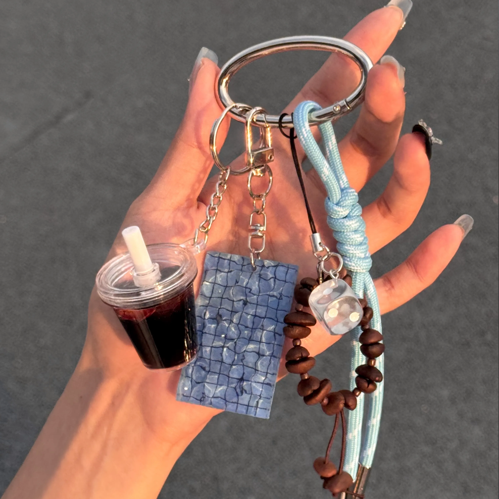 Questo accessorio rinfrescante unisce un tocco lucido ciondolo a forma di chicco di caffè freddo con atmosfera fresca a bordo piscina, sospeso su un vibrante cordone blu—la tua bevanda quotidiana ha appena fatto un tuffo. Agganciala alla tua borsa, alla tua borsa da spiaggia o al tuo portachiavi per un'istantanea sferzata di energia estiva.