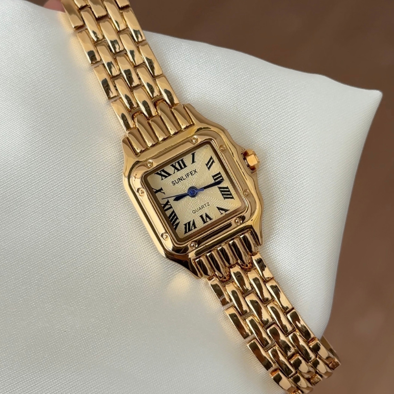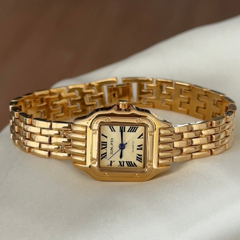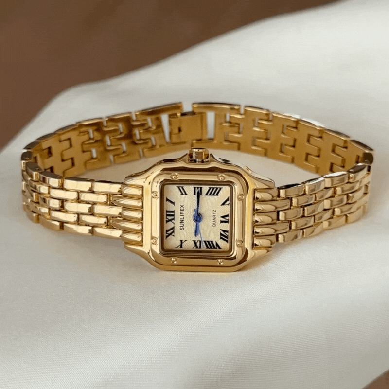 Rectangular Gold Tone Watch - Complete Set with Alloy Band | Women's Quartz