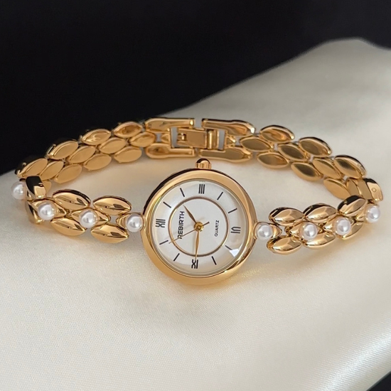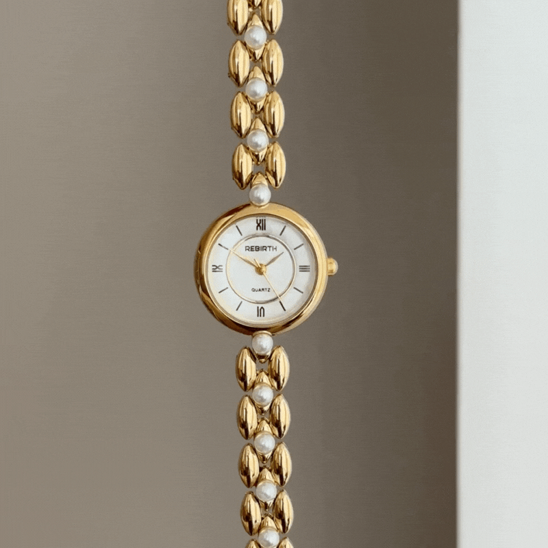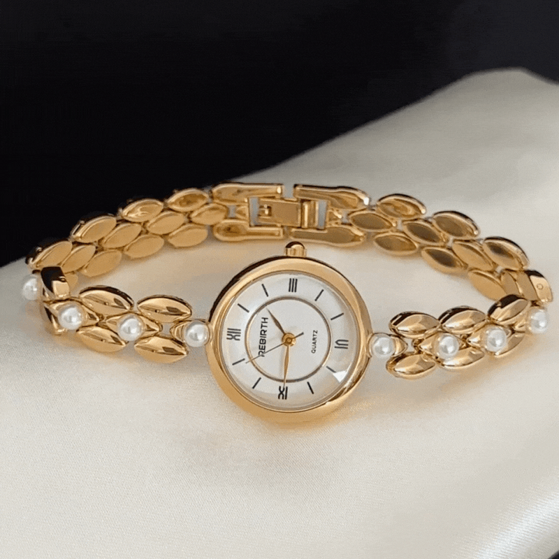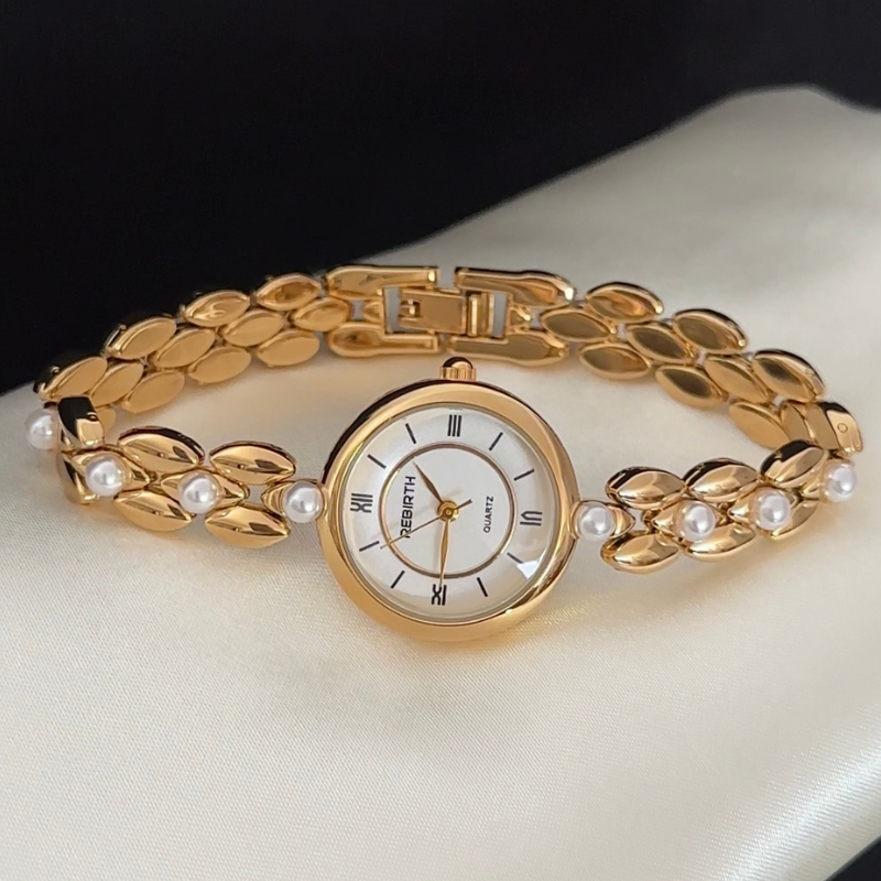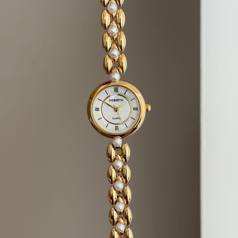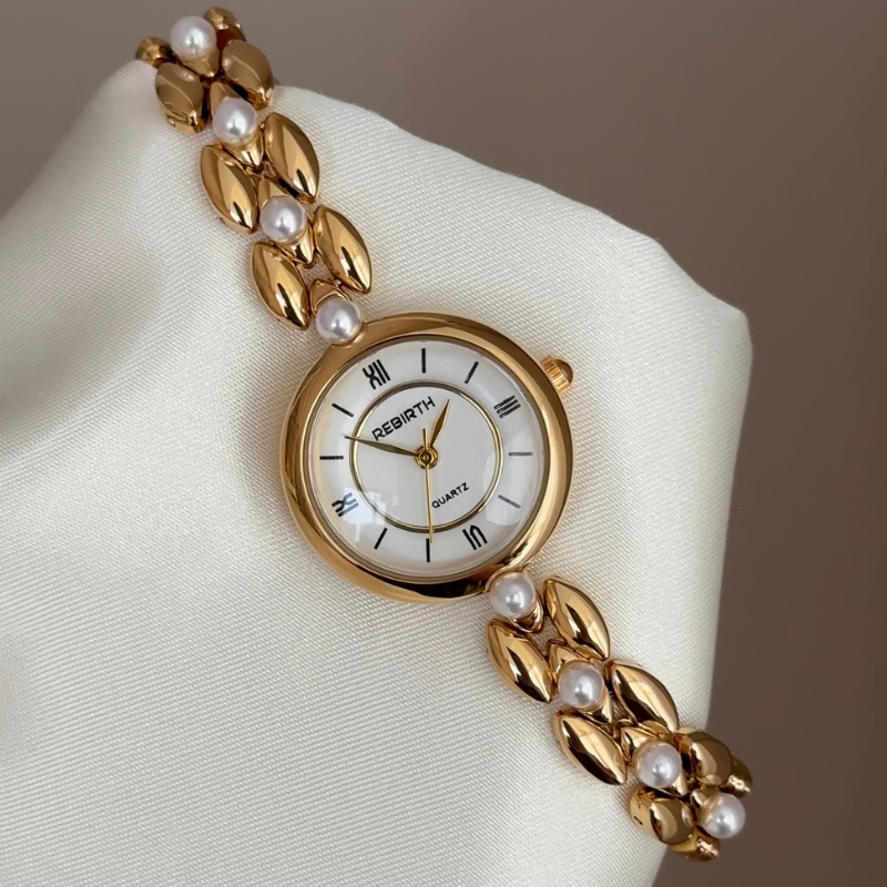 Refined Light Luxury Pearl Chain Watch - White Dial Gold Alloy Quartz