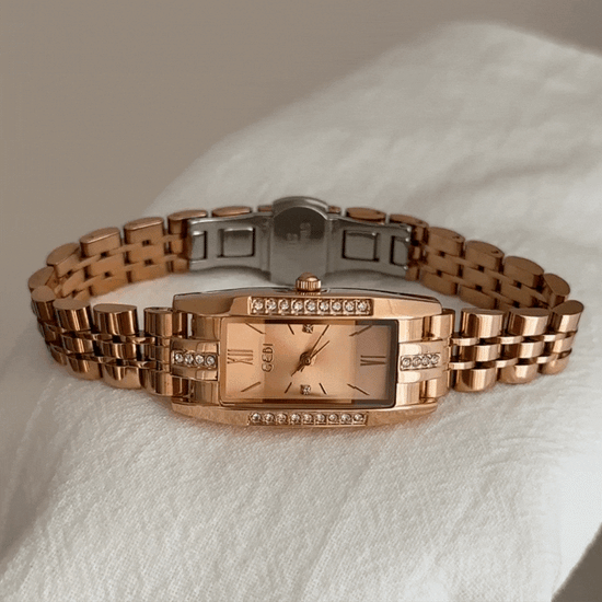 Rose Gold Women’s Elegant Watch – Rectangular Dial Quartz Watch with Crystal-Studded Case | Camille