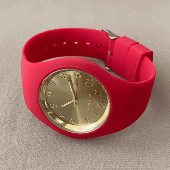 The Sporty Chic watch blends dynamic energy with modern elegance. Designed with a bold red silicone strap and a large gold round dial, it’s the perfect accessory for women who want to stay active yet stylish. Whether you’re hitting the gym, running errands, or dressing up casually, this watch adds a pop of color and confidence to every look.