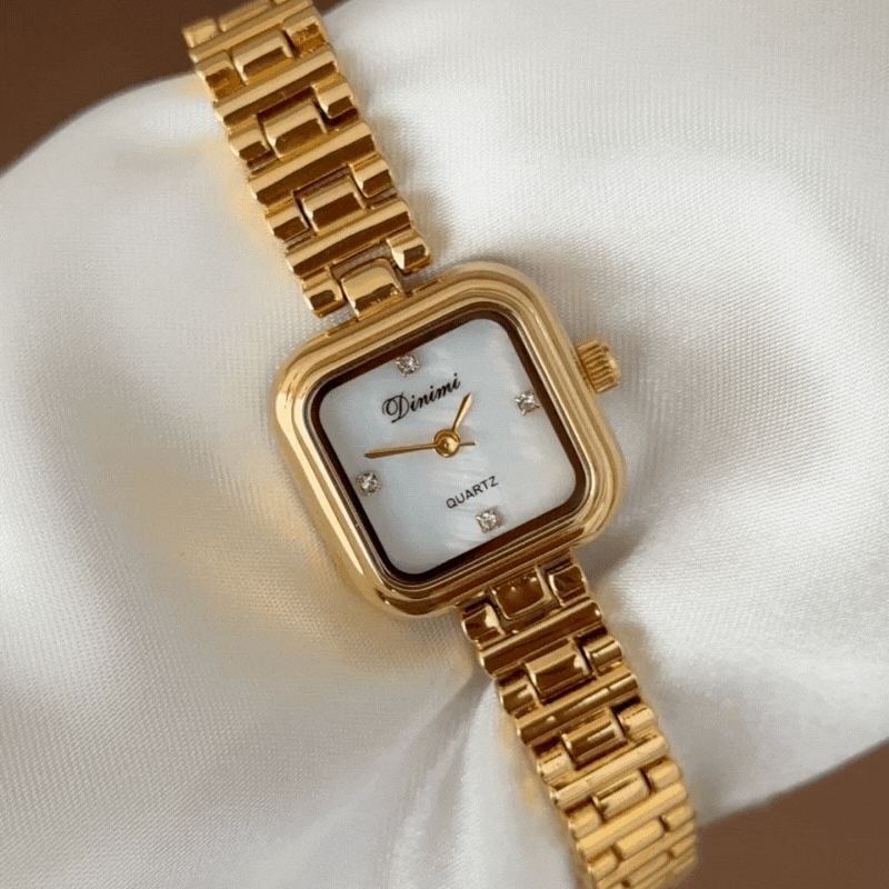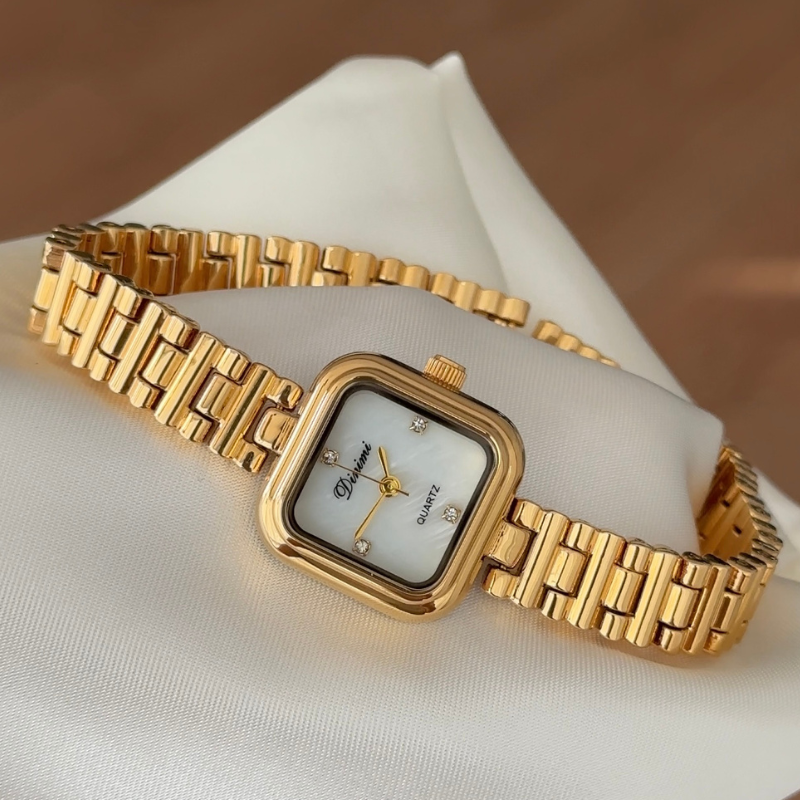 Timeless Elegance Gold Rectangular Dial Alloy Bracelet Quartz Watch